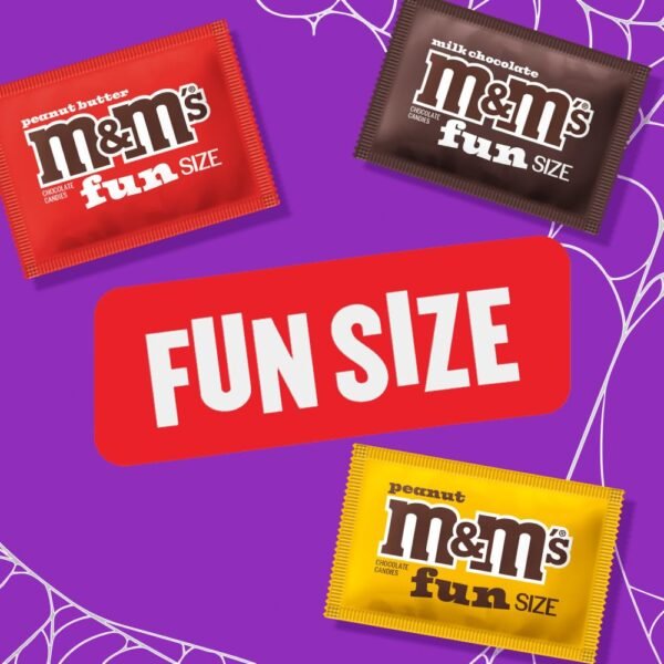 M&M’S Fun Size Assorted Chocolate Candy Variety Pack, Milk Chocolate, Peanut & Peanut Butter, Party Size Bulk Candy Bags for Halloween, Party Favors, Offices, and More, 19.41 Oz