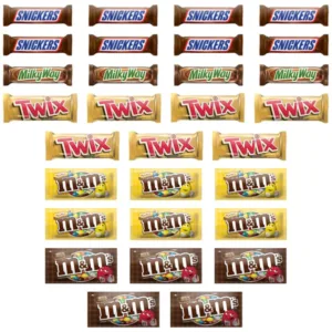 This 30-count variety mix of full size chocolate bars features SNICKERS, TWIX, M&M’S Peanut Chocolate Candies, M&M’S Milk Chocolate Candies and MILKY WAY Chocolate Candy Bars.