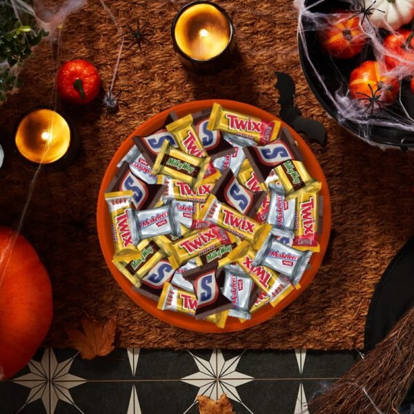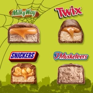 • Contains one (1) 30.63-ounce assorted chocolate candy variety pack bulk bag filled with 110 pieces of SNICKERS, 3 MUSKETEERS, MILKY WAY and TWIX Minis Halloween Candy